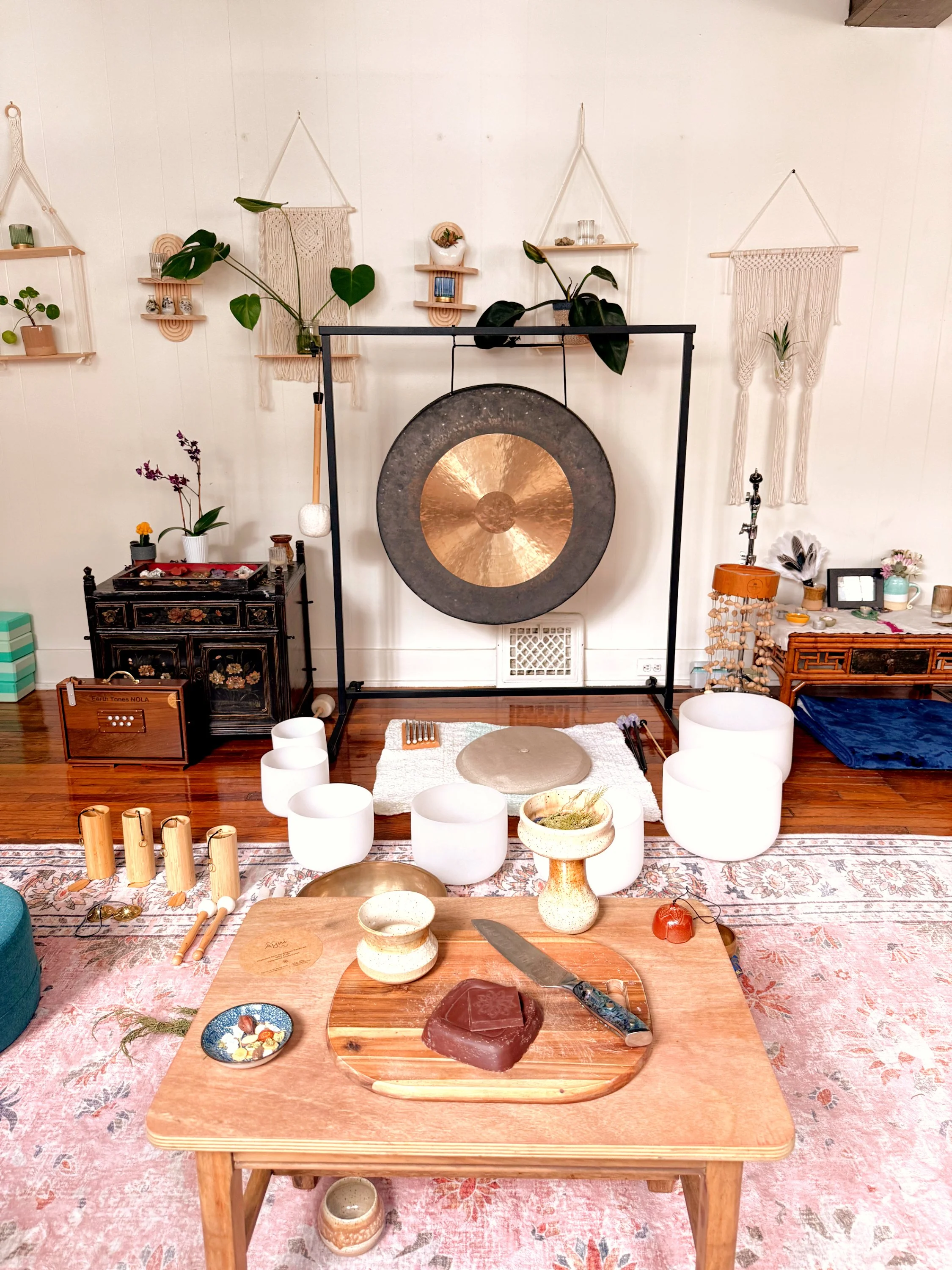 Sound healing is an act of deep listening. It works through vibration, gently moving through the body to unwind tension, shift stagnant energy, and support the nervous system in finding safety and ease. Instruments like crystal singing bowls, chimes, and gongs help recalibrate your system—drawing you into deeper presence and connection with yourself.